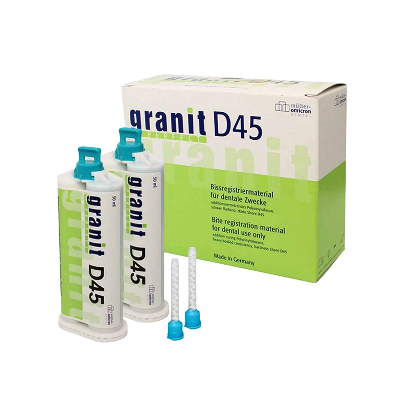 به منظور استفاده در کاربردهای مختلف و نیز برآورده کردن نیازهای شخصی دندانپزشکان و تکنسین های دندانپزشکی، طیف گسترده ای از مواد ثبت بایت برای مصرف کنندکان موجود است. همه مواد از جنس سیلیکون افزایشی A - Silicones با دقت و کیفیت بالایی هستند و از نوع 1 (heavy body) دارای تیزوتروپی عالی هستند که مانع از جاری شدن مواد به طور ناخواسته میشود و همچنین ابعاد ثابتی داشته و میتوان به دفعات از آن استفاده کرد. به طور عمده این محصولات از نظر درجه سختی، Setting Time در دهان و میزان خاصی از غلظت متفاوت هستند. بنابراین granit PERFECT D45 موادی هستند که به سرعت (یعنی ظرف مدت 30 ثانیه) در داخل دهان بیمار، set میشوند.