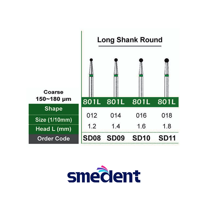 آتنا تجارت پارس فرز فرز الماسه تراش روند شنک بلند اسمدنت کد Smedent Long Shank Round - 801L