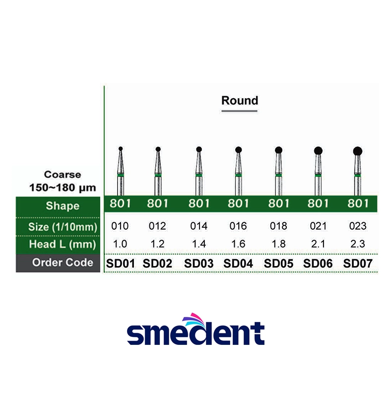 میزان زبری فرز دندانپزشکی با رنگ مخصوصی در دور گردن فرز مشخص می شود. رنگ بندی فرزهای مخصوص توربین دندانپزشکی شامل سیاه، سبز، آبی، قرمز و زرد هستند که میزان زبری آن ها به ترتیب از بیشترین به کمترین تقسیم بندی شده اند. معمولا فرزهای دور سبز و دور آبی برای تراش دندان ها مورد استفاده قرار می گیرند و از فرزهای دور زرد برای ترمیم های کامپوزیتی استفاده می شود.
